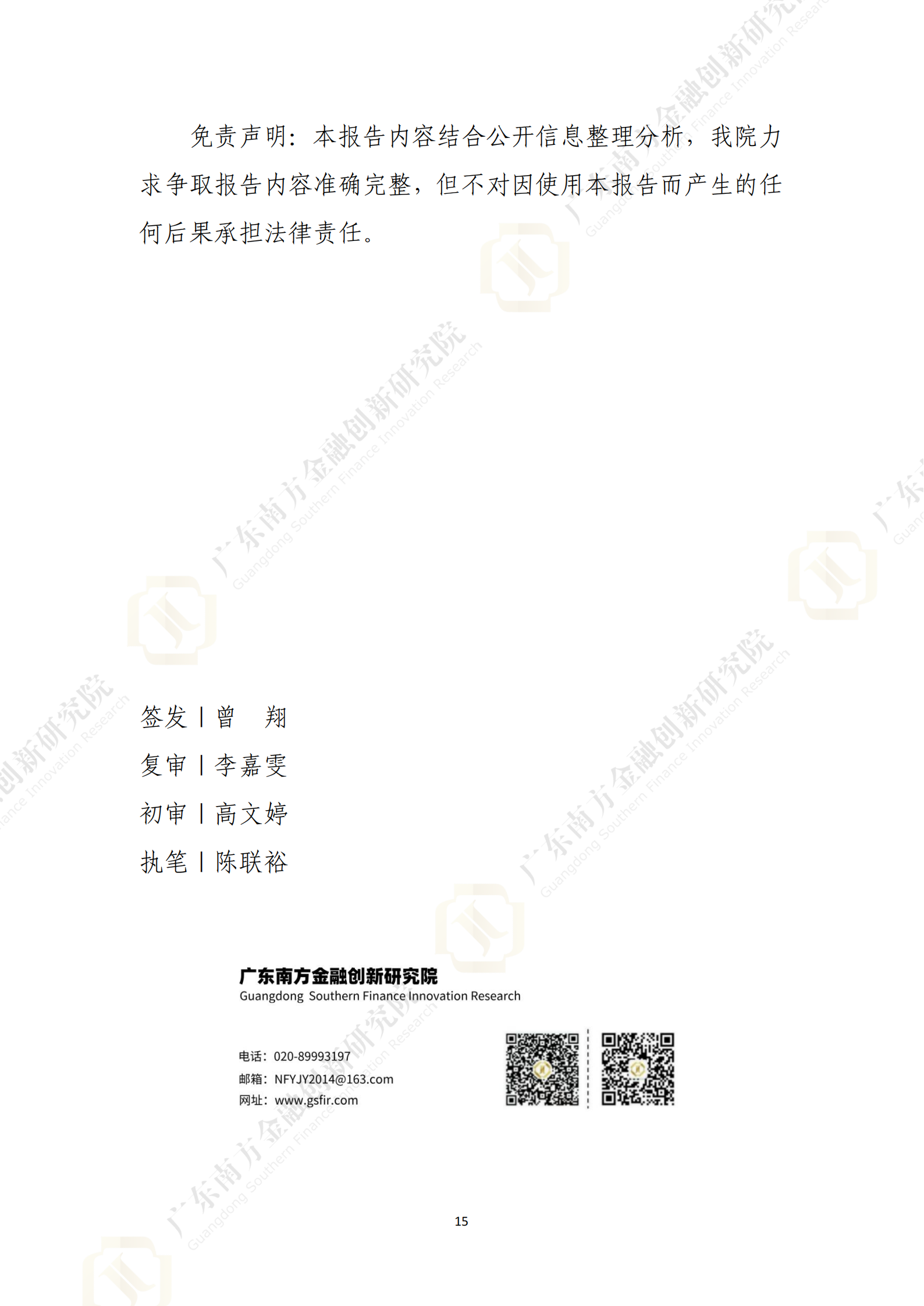 本报告版权仅为广东南方金融创新研究院所有,未经我院许可,任何机构和个人不得以任何形式翻版、复制和发布。任何媒体公开刊登本研究报告必须同时刊登我院授权书。