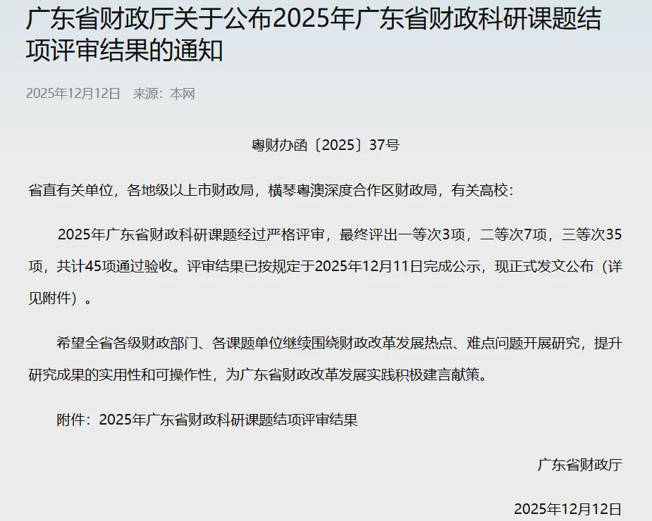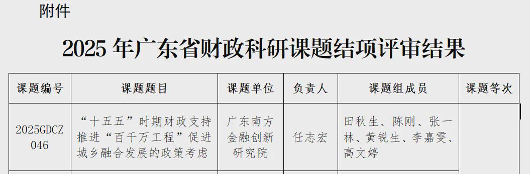 我院承担的2025年广东省财政科研课题《“十五五”时期财政支持推进“百千万工程”促进城乡融合发展的政策考虑》顺利结项。
